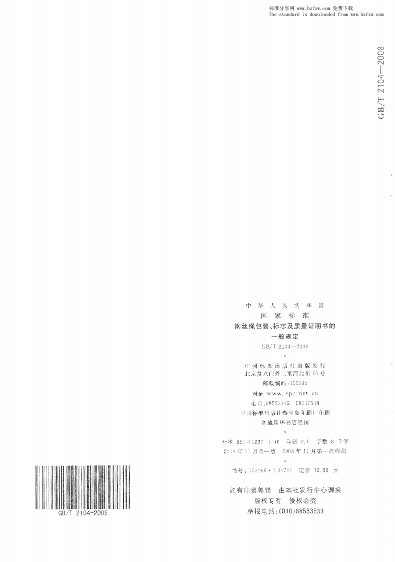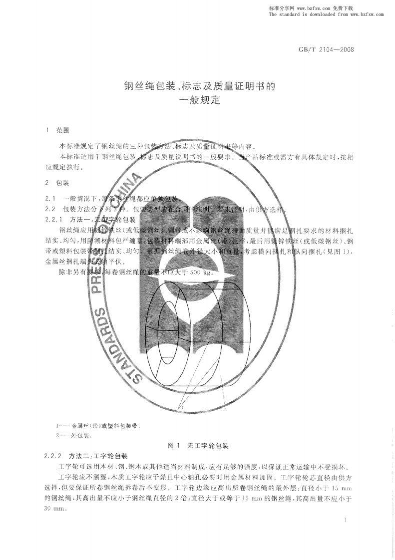 GB/T 2104-2008 钢丝绳包装、标志及质量证明书的一般规定