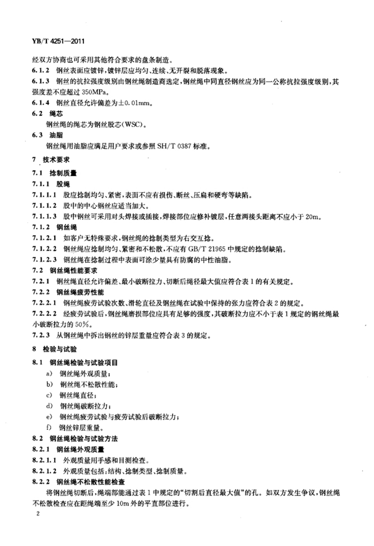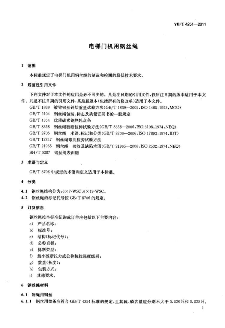YB/T4251-2011 电梯门机用钢丝绳