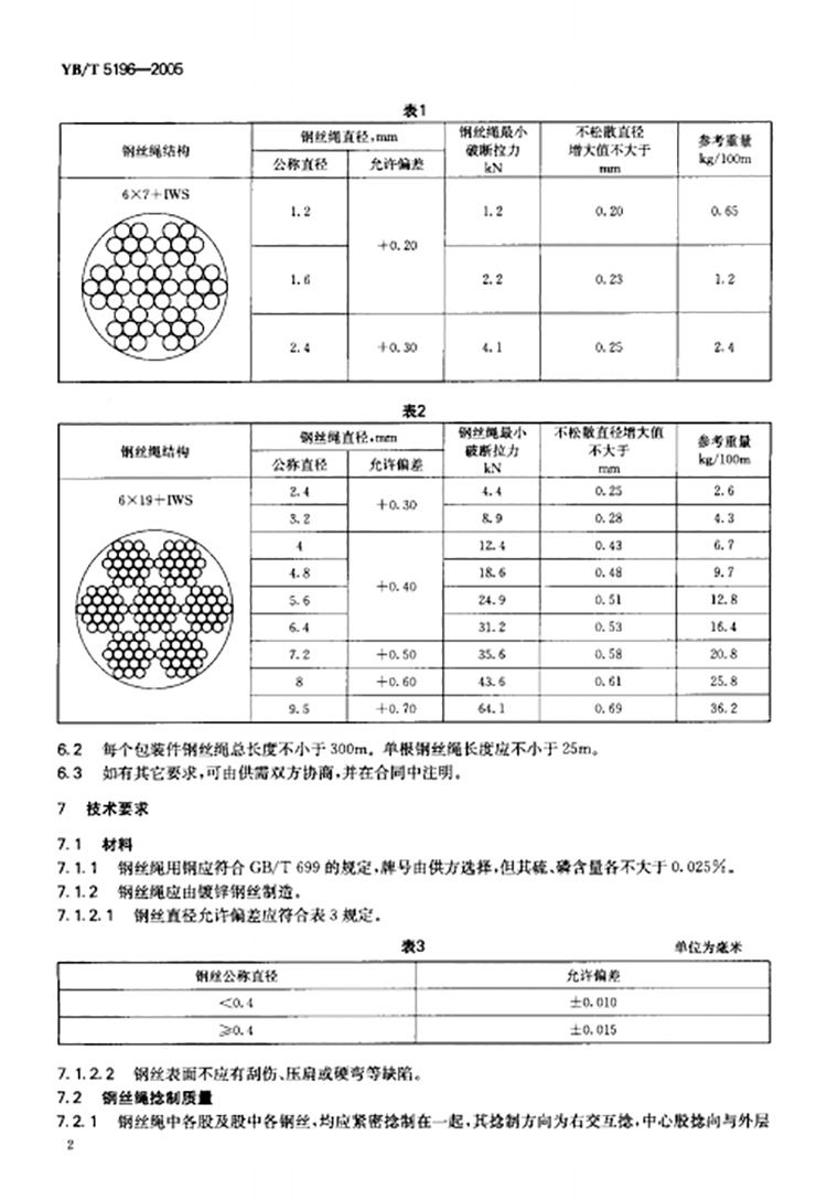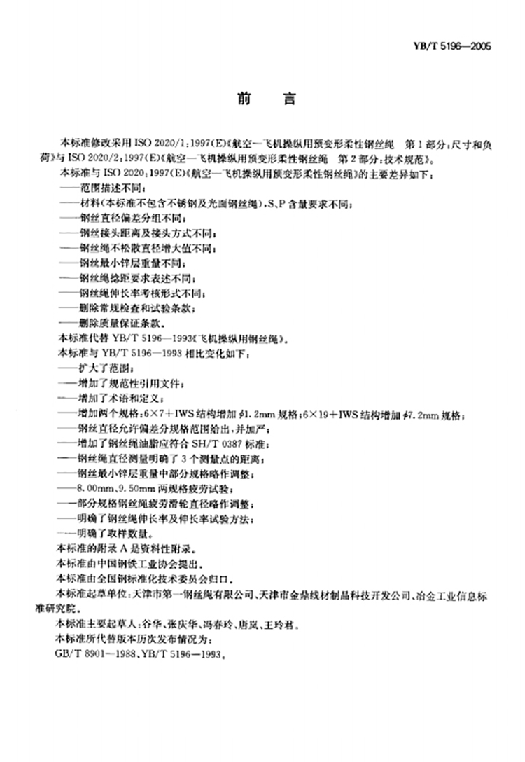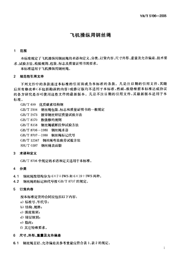 YB/T 5196-2005 飞机操纵用钢丝绳