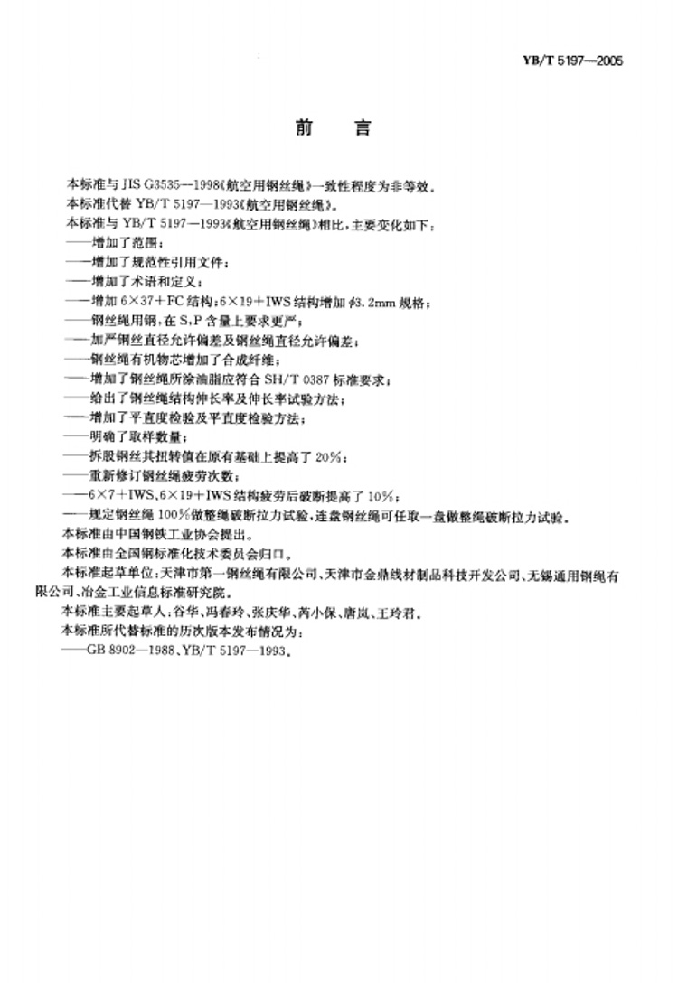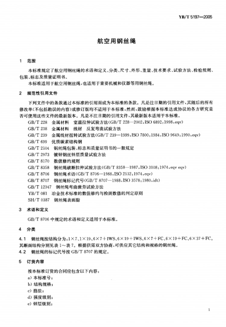 YB/T 5197-2005 航空用钢丝绳