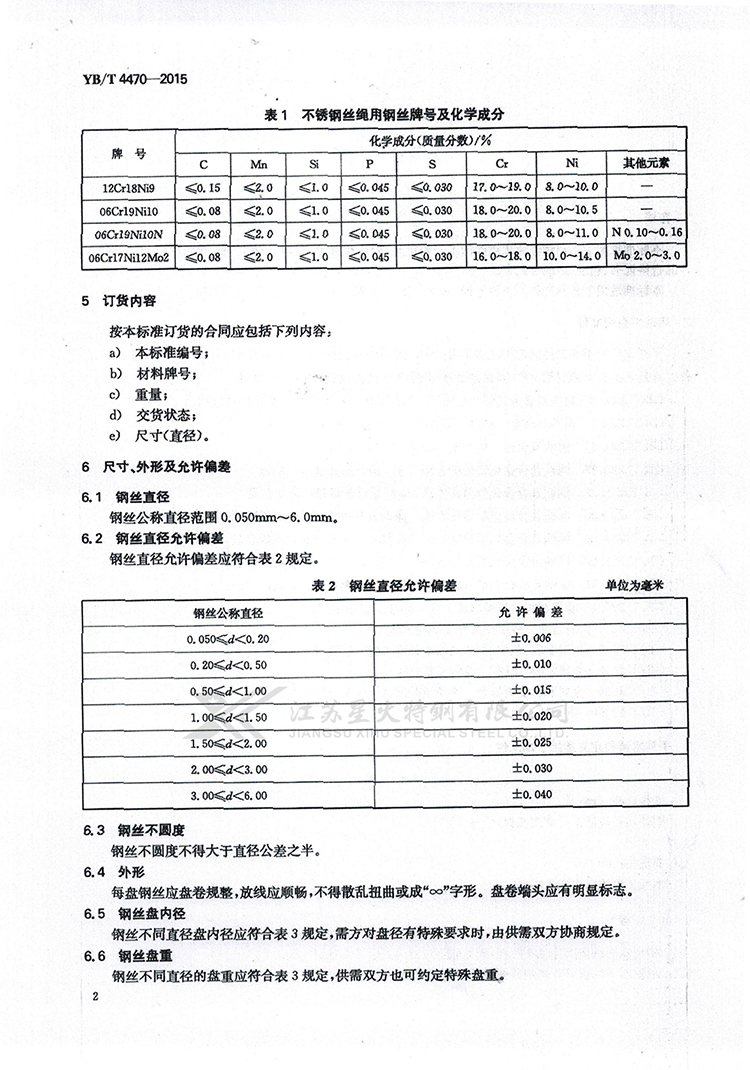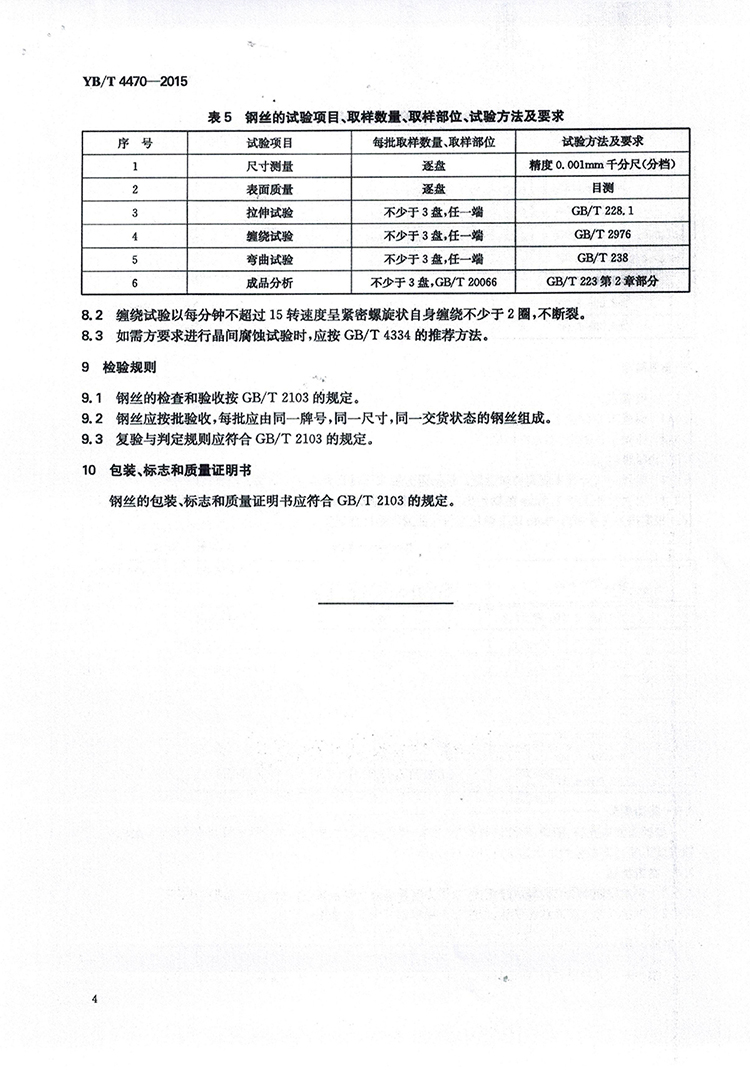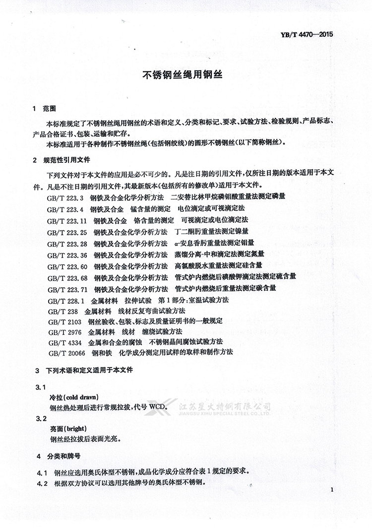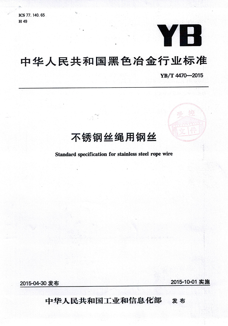 YB/T 4470-2015 不锈钢丝绳用钢丝